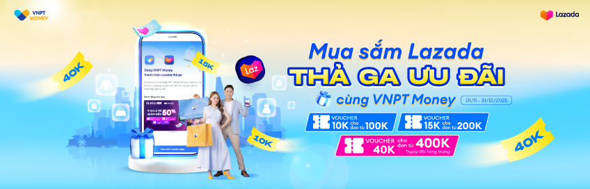 (*) Tất cả voucher ưu đãi trong chương trình chỉ áp dụng khi mua hàng trên Lazada và thanh toán bằng VNPT Money.
