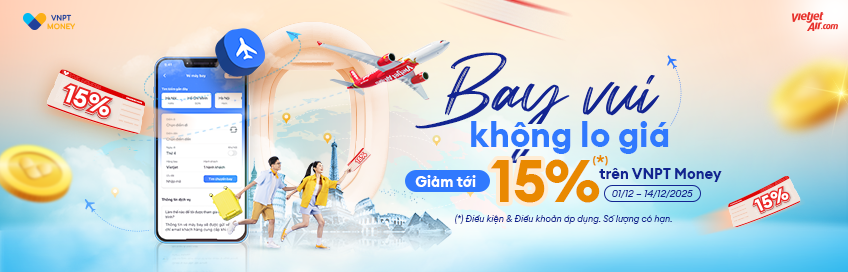 Từ 01/12/2025 – 14/12/2025, khách hàng mua vé máy bay Vietjet trên VNPT Money được giảm tới 15% giá vé.